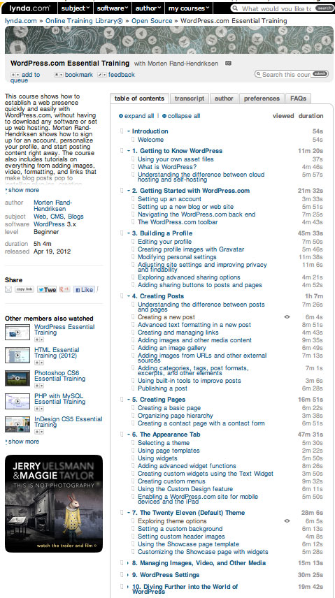 You’ll see that the training is divided into dozens of short videos — similar to the Khan Academy approach to training. You can watch some of these tutorials prior to our Monday workshop and then watch others as you continue to work on your online portfolio. Most are just a few minutes.