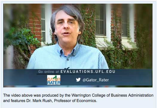 The GatorRater website includes this video of Dr. Dennis Rush explaining why students should complete Faculty Course Evaluations.